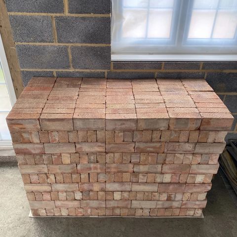 Over two thousand reclaimed LBC Milton Buff London Bricks, 65mm. Great condition - cleaned from mortar and stored indoors, reclaimed from a single property shown on the photo.