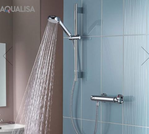 Compact bar mixer shower in chrome finish. Each set includes: slide rail; hose; handset; and thermostatic mixer valve. "Easy fit fitting bracket" is not included.