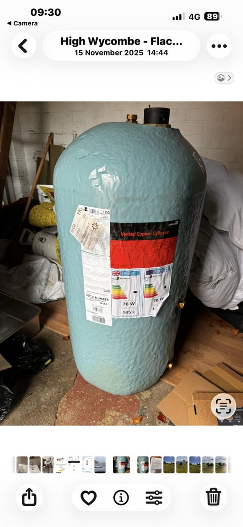 Posted by. Kevin S Copper cylinder 1050 x450 vented With all male irons fitted. Also stainless steel heater element fitted never used. As New Location Fennels Farm Road, High Wycombe, Buckinghamshire, HP109BP what3words watch this item contact the seller Share this post