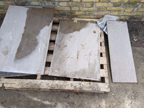 Left over Indian sandstone riven paving - raj green. 3 pieces available, 22mm thickness