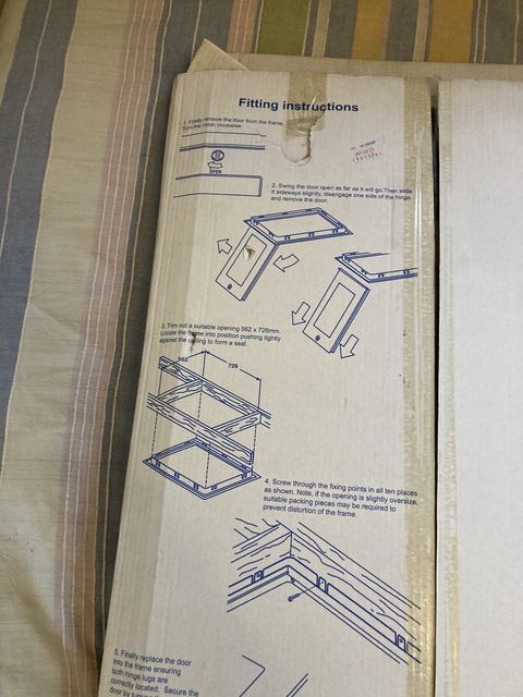 Manthorpe GL250-03 loft hatch with hinged drop down door. Fully insulated and draught sealed with 3 point locking catch. White colour