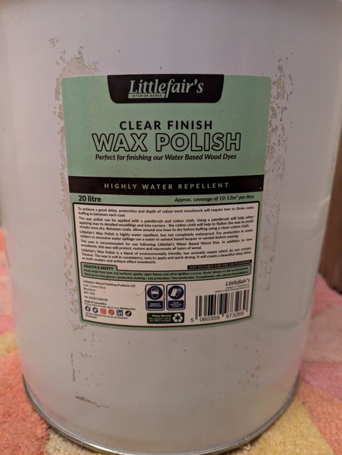20 litre bucket of Littlefair's Clear Finish Wax Polish. I bought this when I was renovating my tenement flat in Edinburgh. The flat hadn't been updated since 1954. I have seven 4 panel doors that needed dipping/stripping (thanks Dip and Strip) and then finishing. I've used about 1/5 of this buckets, so there is about 16 litres or so left. It.seems I can load only one photo to this listing, but I have photos of the inside of the bucket of you'd like to see them. I paid about £225 for this. My project it done and I am now living in my flat. I need this bucket gone. I think £100 is a pretty good deal for the volume.