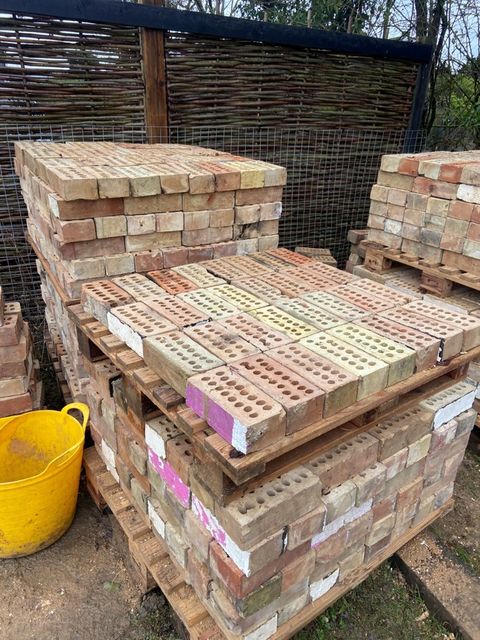 Imperial bricks carefully salvaged from a house deconstruction in St Neots, mostly Cambridgeshire Whites with some pinks and other shades.