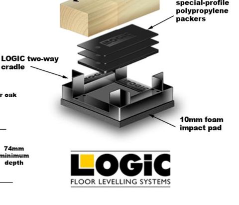 Reclaimed Logic sports flooring cradles and polypropylene packers, removed from an old squash court floor.